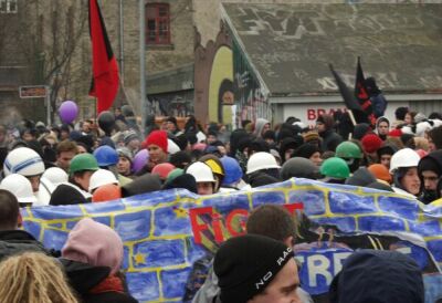 EU-huippukokous keräsi 13.12.2002 Kööpenhaminan kaduille tuhansia mielenosoittajia, jotka vaativat muun muassa sosiaalisia oikeuksia ja siirtolaisille avointa Eurooppaa.